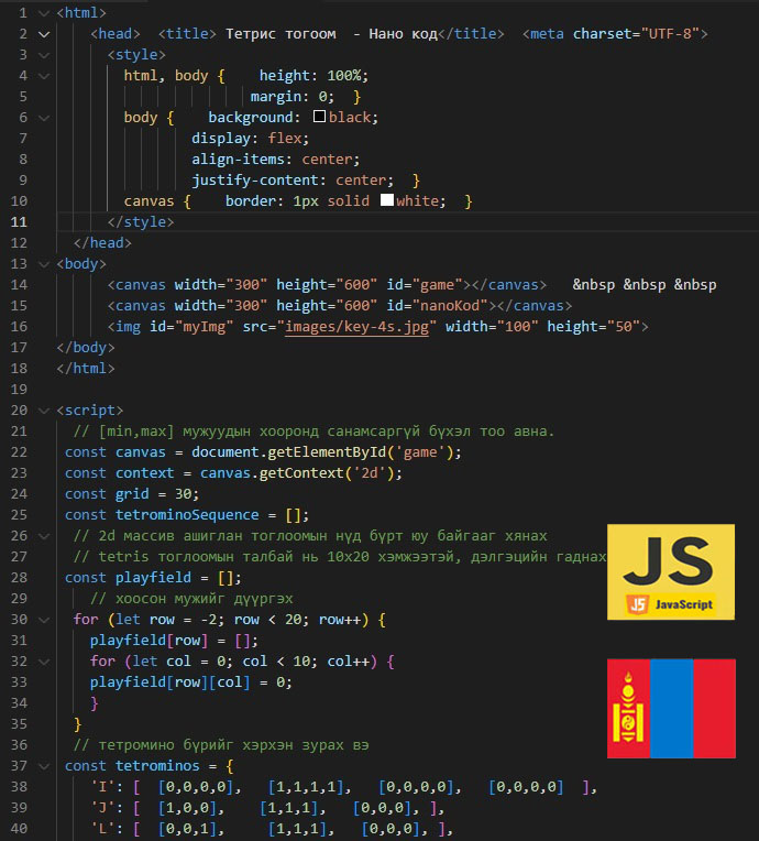 * Code file name: js-tetris-nano5.php /source code copy, past , save / / START +R -> Visual studio code -> ENTER/